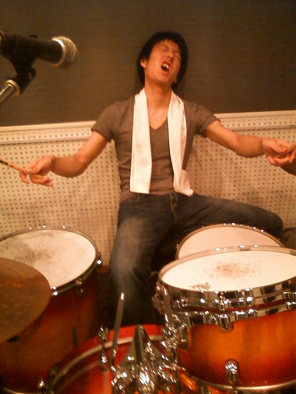 昨日のドラムのトラックがひどく音飛びしておりまして、使い物になりません。 このボロPCめ! ブチ切れそうになるのを必死でこらえながら、なんとか1曲だけはドラムがちゃんと録れてたので、その曲のみベース入れ。 はぁはぁ。ちくしょう… いつも思うんだけどさ、何か気合を入れてモノを創ろうとすればするほど、絶対何かしらの妨害が入るんだよな。 もうそのせいですべてを投げ出したくなるほどに。 でも、その妨害を乗り越えたときのみ、人を感動させられるモノが出来る。みたいなジンクスはあるような気がする。 モノを創るってえのは、辛いもんですよ。 てか風邪気味。 PR 今日からIdiot Window1stアルバムのレコーディング。 まずはドラムを一気に3曲ぶん録音しました。 ドラムは残り5曲。お、意外と早く終わりそう? 写真は魂を込めて叩いている小牧。 彼が首から下げているタオルは…いやなんでもないです。 以下業務連絡(宮浦へ) 今回の録音はスタジオ備え付けのSM58のみで行っております。 コンデンサマイクを使いたいところだけども、なんか音割れしちゃうんだよね。 あとセッティングがめんどくさすぎる。 また、キックの音は今回は分けて録音してないです。 SM58をオフマイクで左右から2本。全体を。 や、でもね。それでもなかなかキックの音も録音されてるんだよ。 まぁこのままだとSM58の周波数特性(ハイパス)のおかげで使い物にならない音なんだけれど、 イコライザーで100hz付近をシェルビングするとキックが出てきてなかなか使えそう。 そこんところどうでしょう宮浦さん。俺としてはSM58のみでの録音の方が手間もかからないし、いいと思うのですが。 意外とSM58は収音してくれるよ。 それでもやっぱキックと全体とじゃないとダメだ!って思ったら早めに俺に教えてください。はい。 コンデンサで全体、SM58でキック、という形に切り替えます。セッティングめんどいけど。 ここまで … いやぁ。 今になってようやく俺は音楽に対してケジメをつけるべき時期に来ていると思った。 そんな意味でも今月中には録音を終えてしまいたい。風向きの変わらないうちに。 というわけで、明日はベース録音だ笑 忘れもしない2006年11月26日。