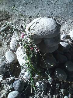 豊平川の橋の下に、石が積み上げられてあって花が添えられていた。